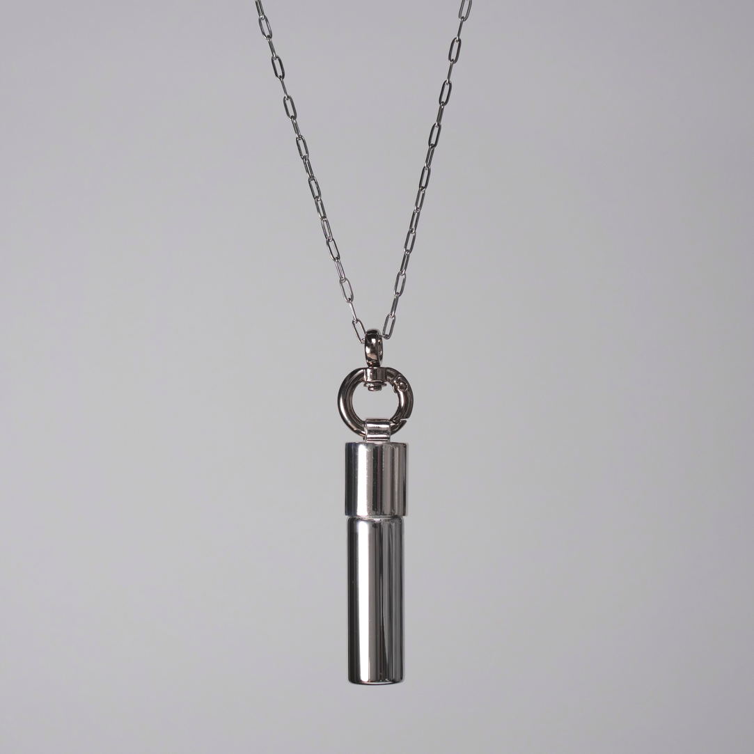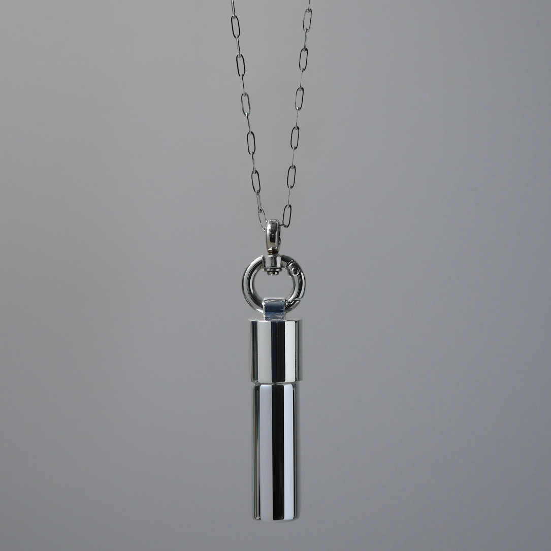 OUR OILに装着する際はオイルのキャップにスイベルパーツを取り付け、小さいリング部分にチェーンを通して着用してください